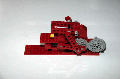 The following images show the construction at intermediate stages.The first image shows the steering assembly. The second image shows the begining of the chassis with the gears for the PTO. |