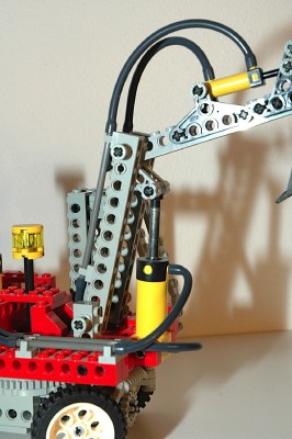 have looked completely out of place on this jib.Nothing fancy going on with the mechanism, the bucket just pivots around an axle. The actuator attaches to a link arm which drives the bucket. |