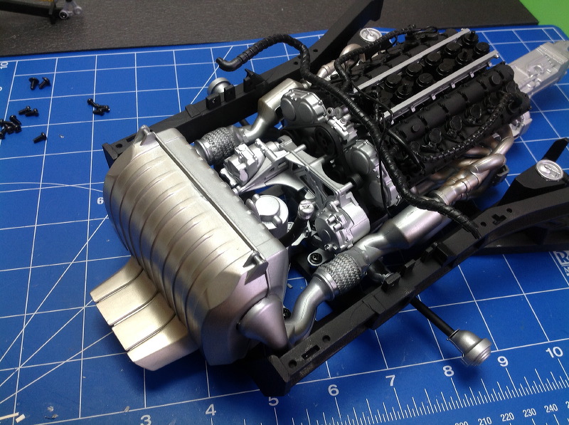Here is a closeup of the rear assembly showing the engine and exhaust detail. In the real car, there would be dozens more wires and hoses here.