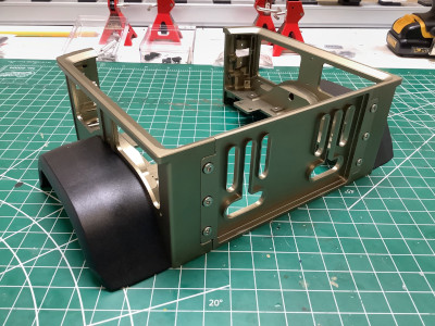 This picture shows the machined front face attached to the backing structure. It is starting to look like a truck!