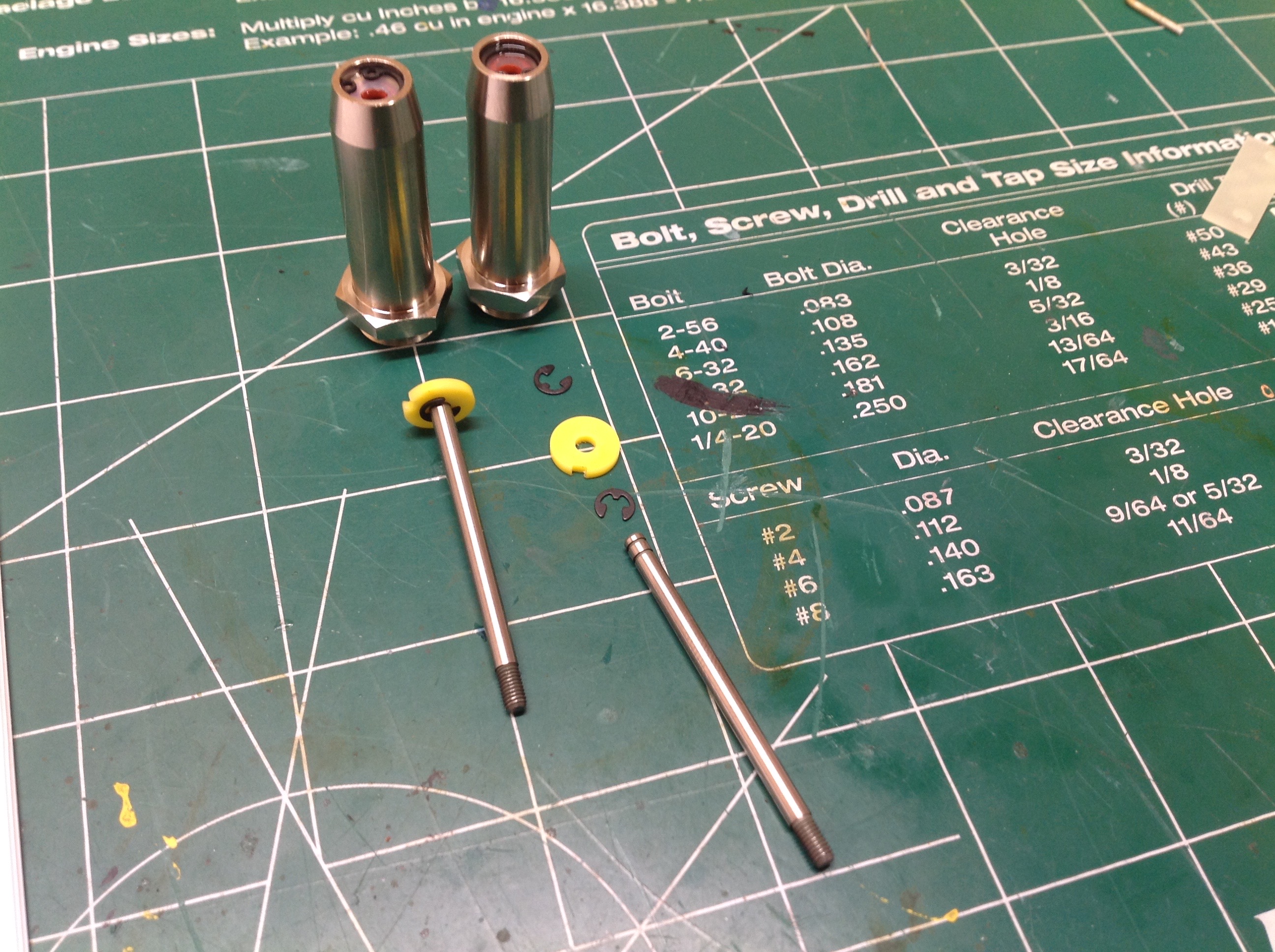 Time for the beautiful shocks. Each machined aluminum cylinder