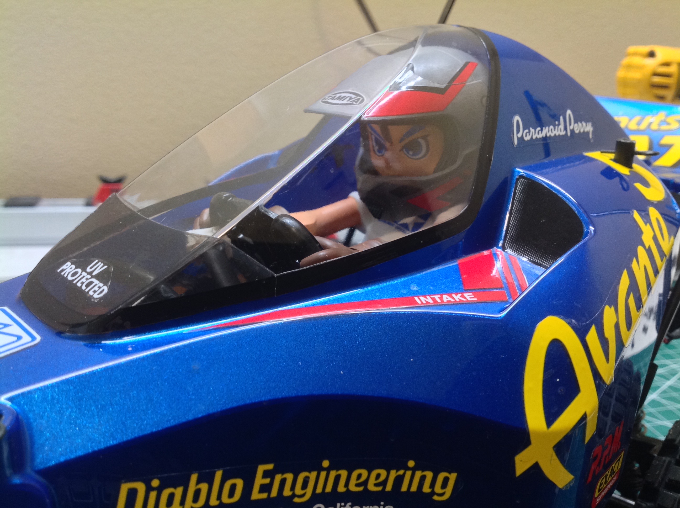 Here is the completed model with the driver installed and the wheels and
