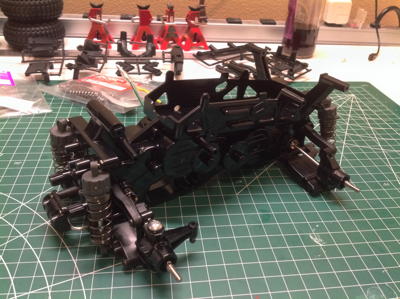 Now I've installed the plastic CVA shocks, the suspension, and finally