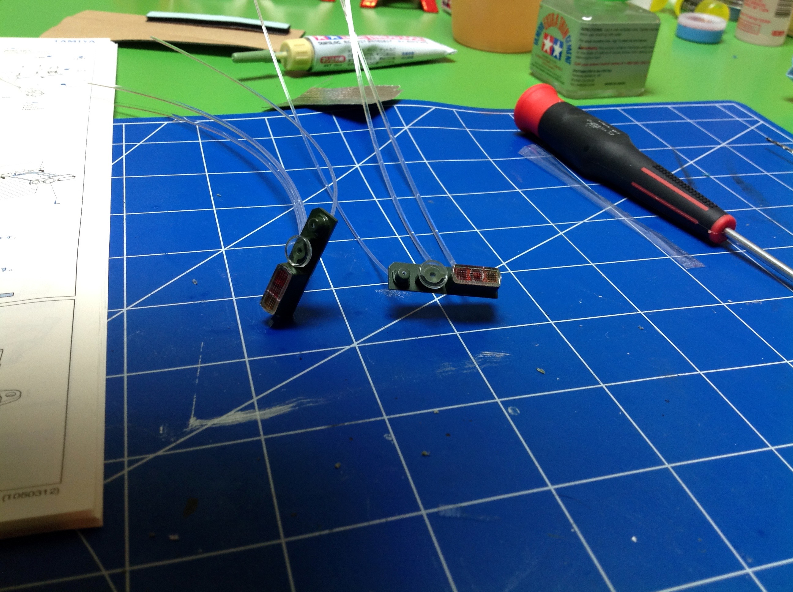 Step 30 installs the headlights, some spare tracks, and some side marker
