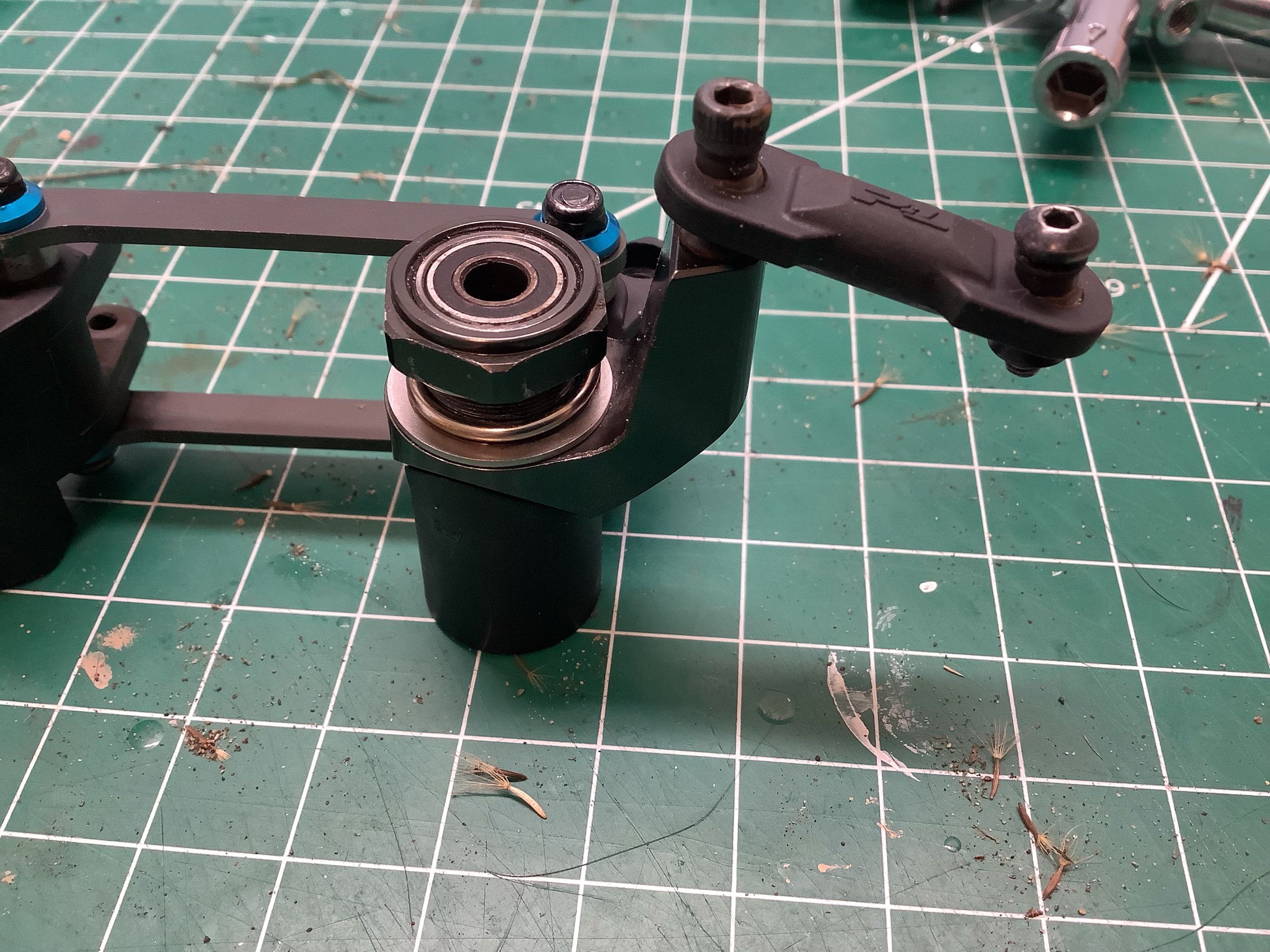 Here I've installed the steering cranks and the upper upgraded aluminum
