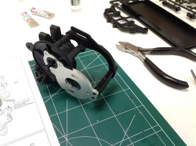 Here we see the double bellcrank steering being installed. The cranks ride on ball bearings supported by metal shafts.