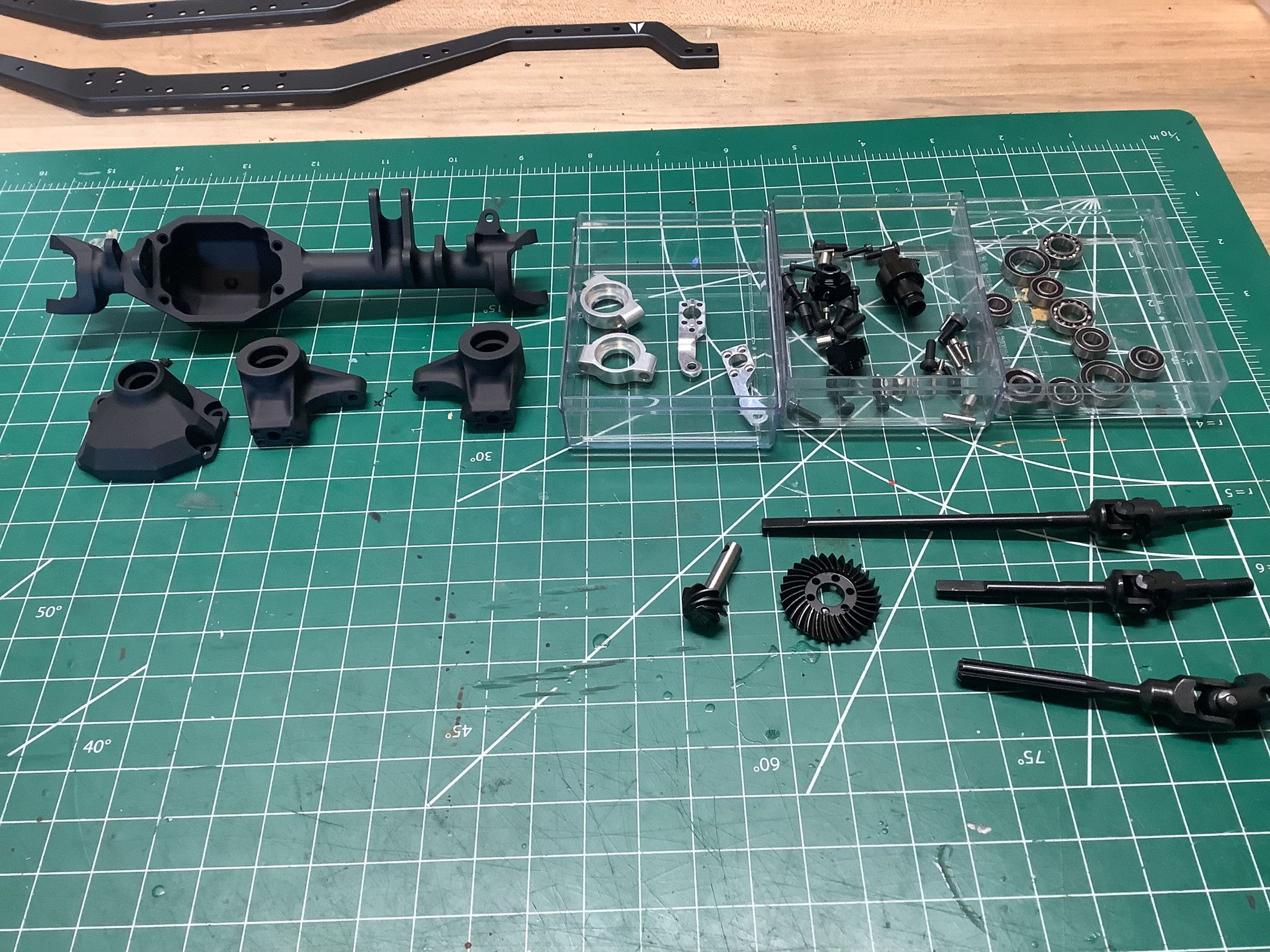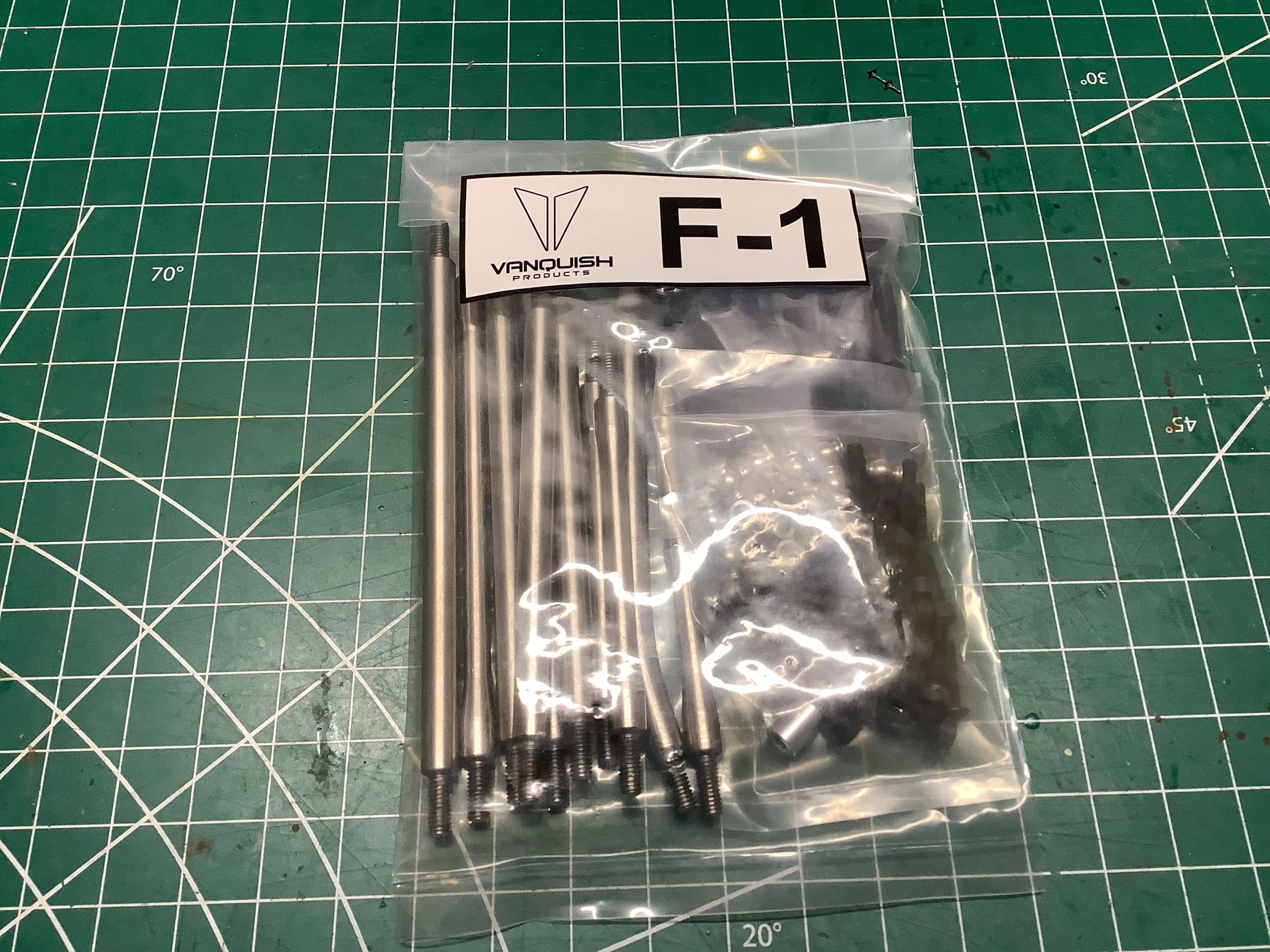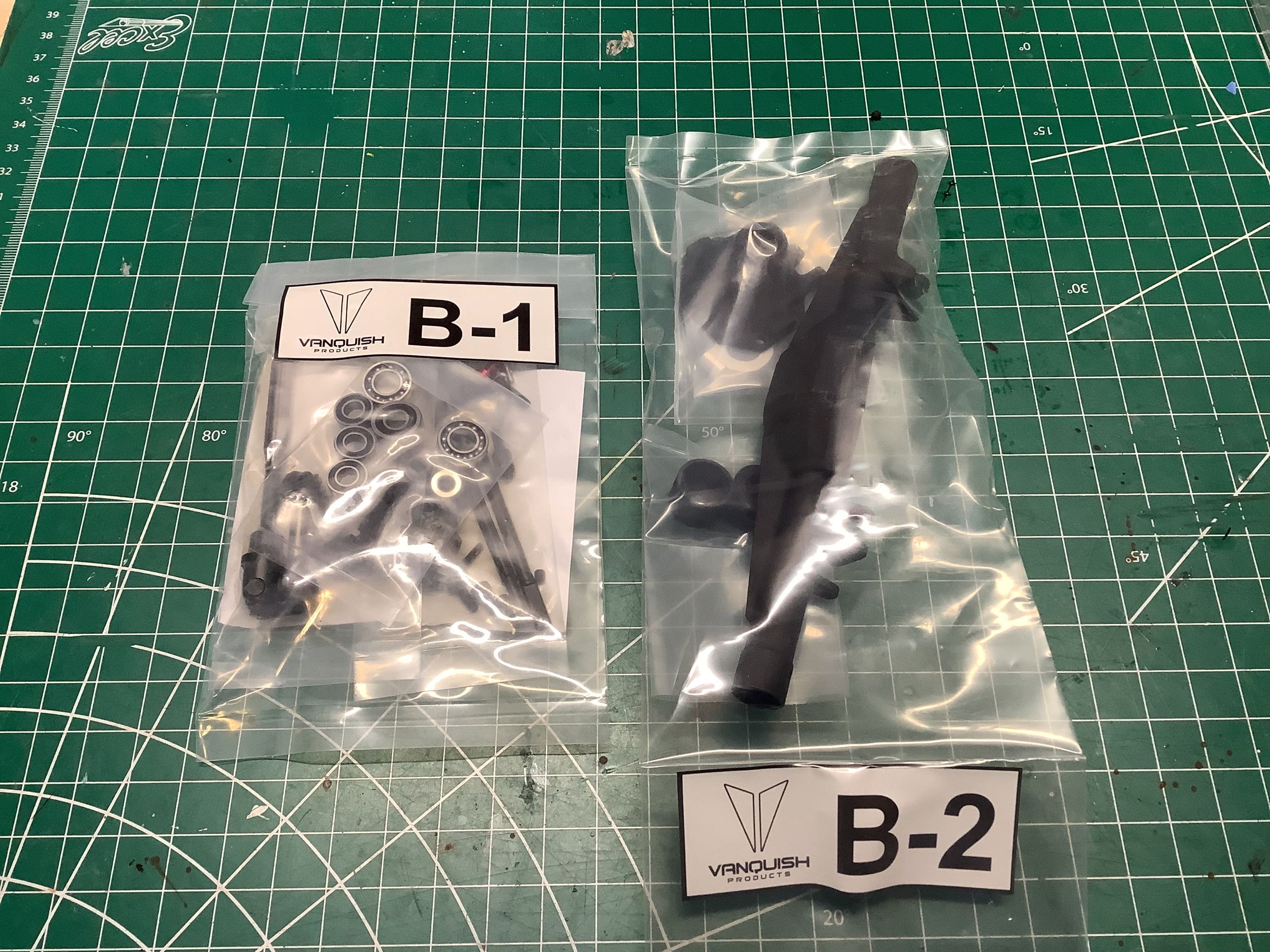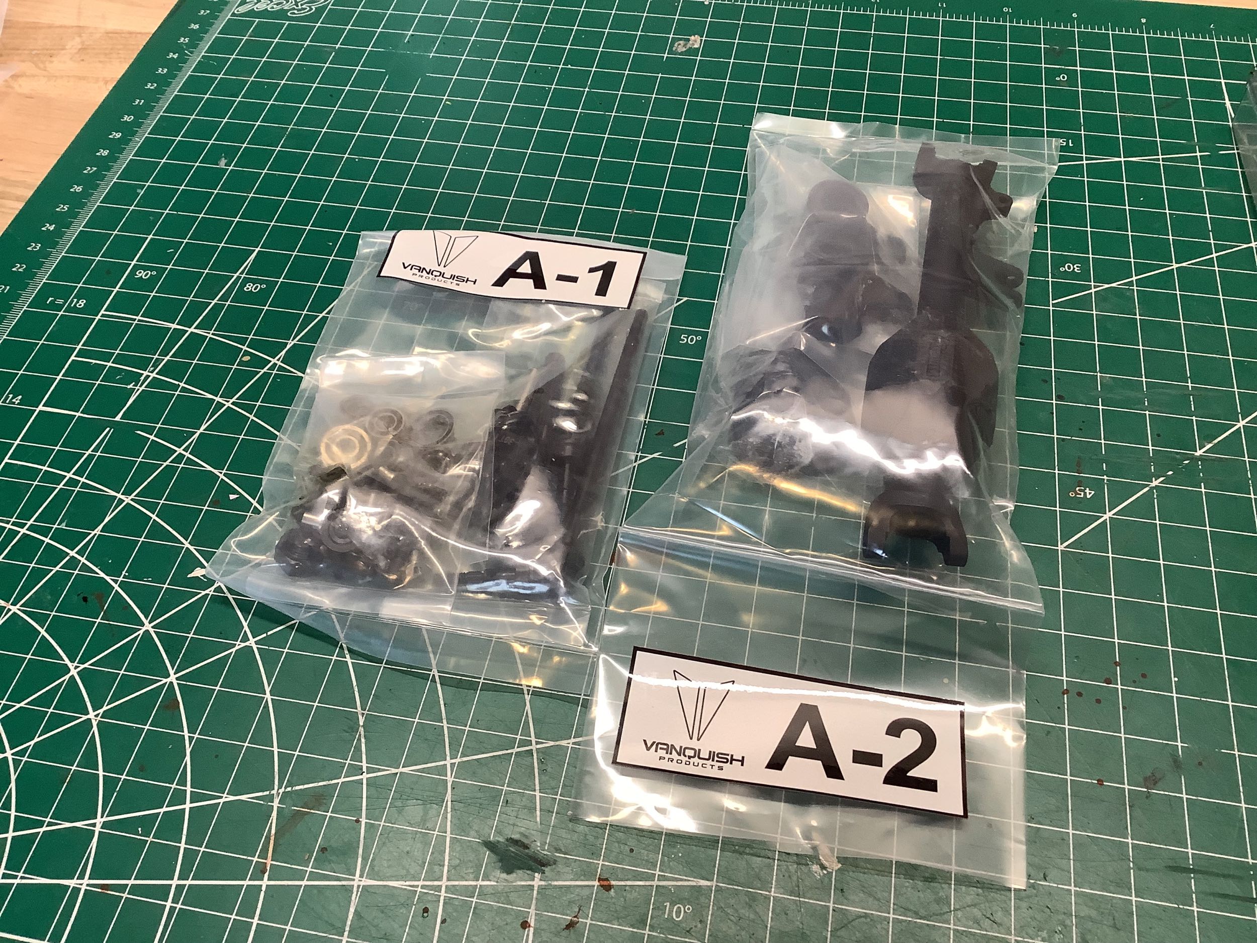 We'll start with bags A-1 and A-2 which constitute the front axle.