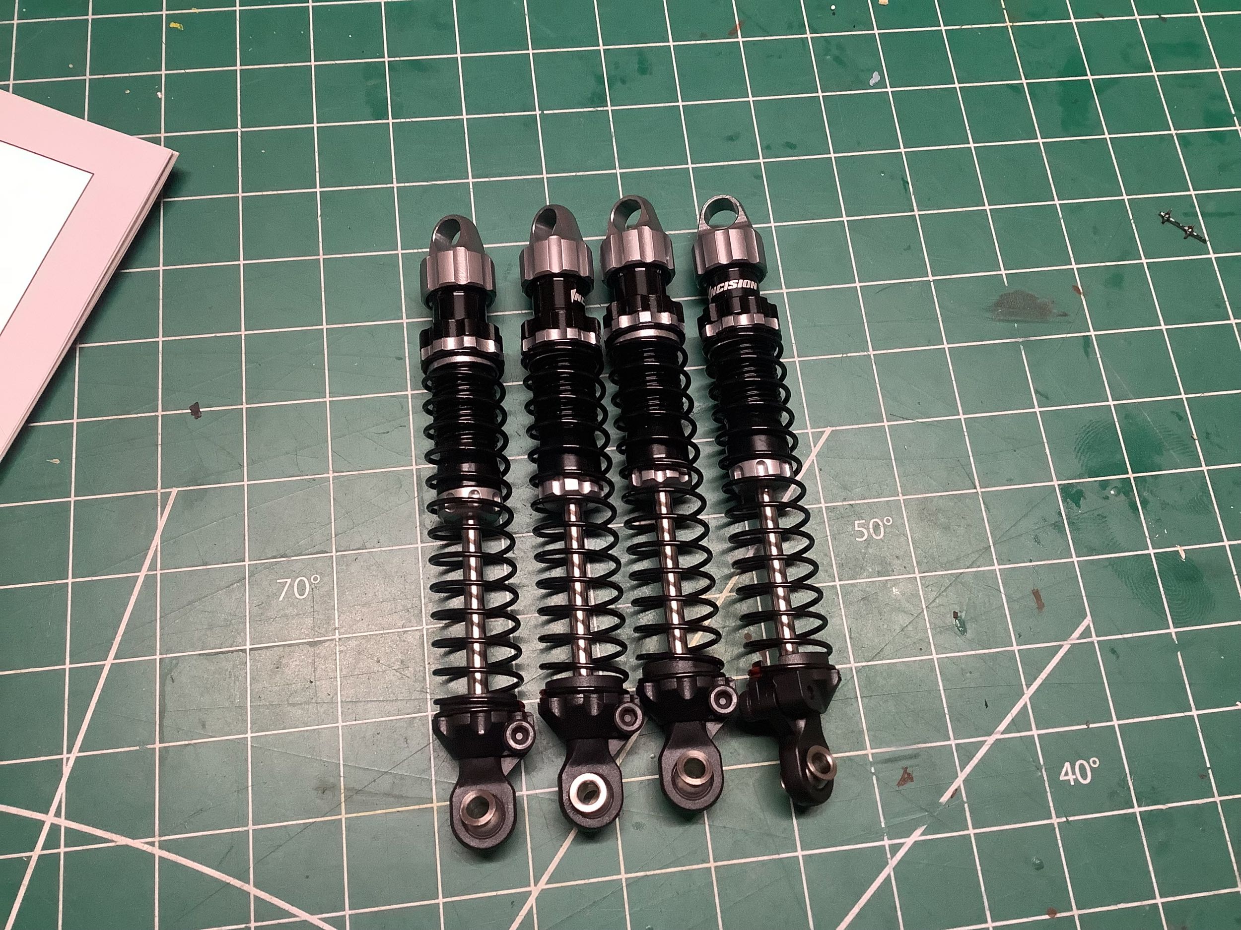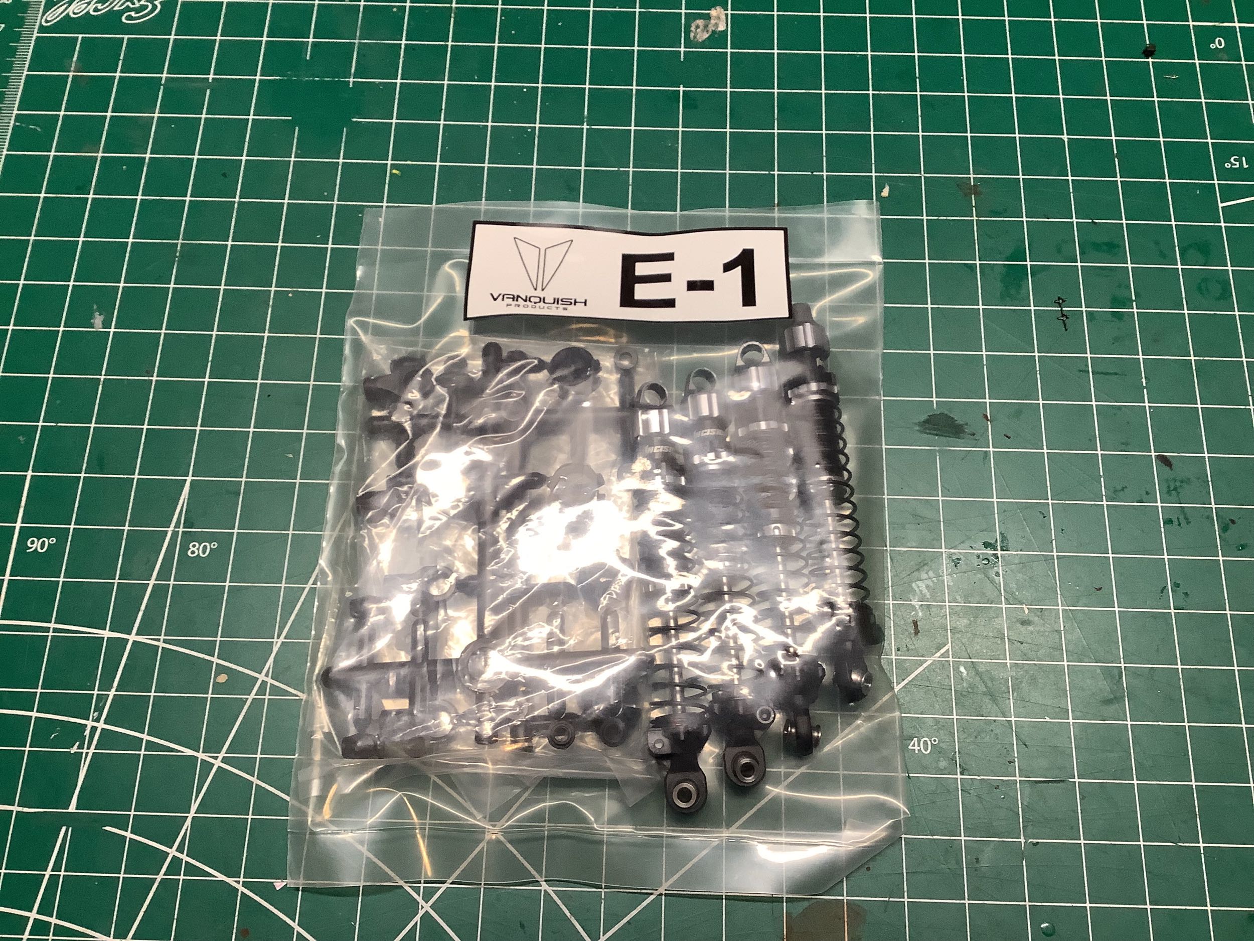 E-1 contain the Incision shocks. These are 90mm coilover shocks