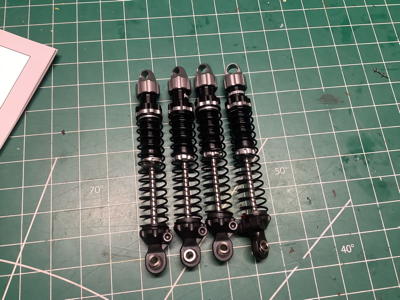 upper collars are threaded onto the shock bodies for preload adjustment.