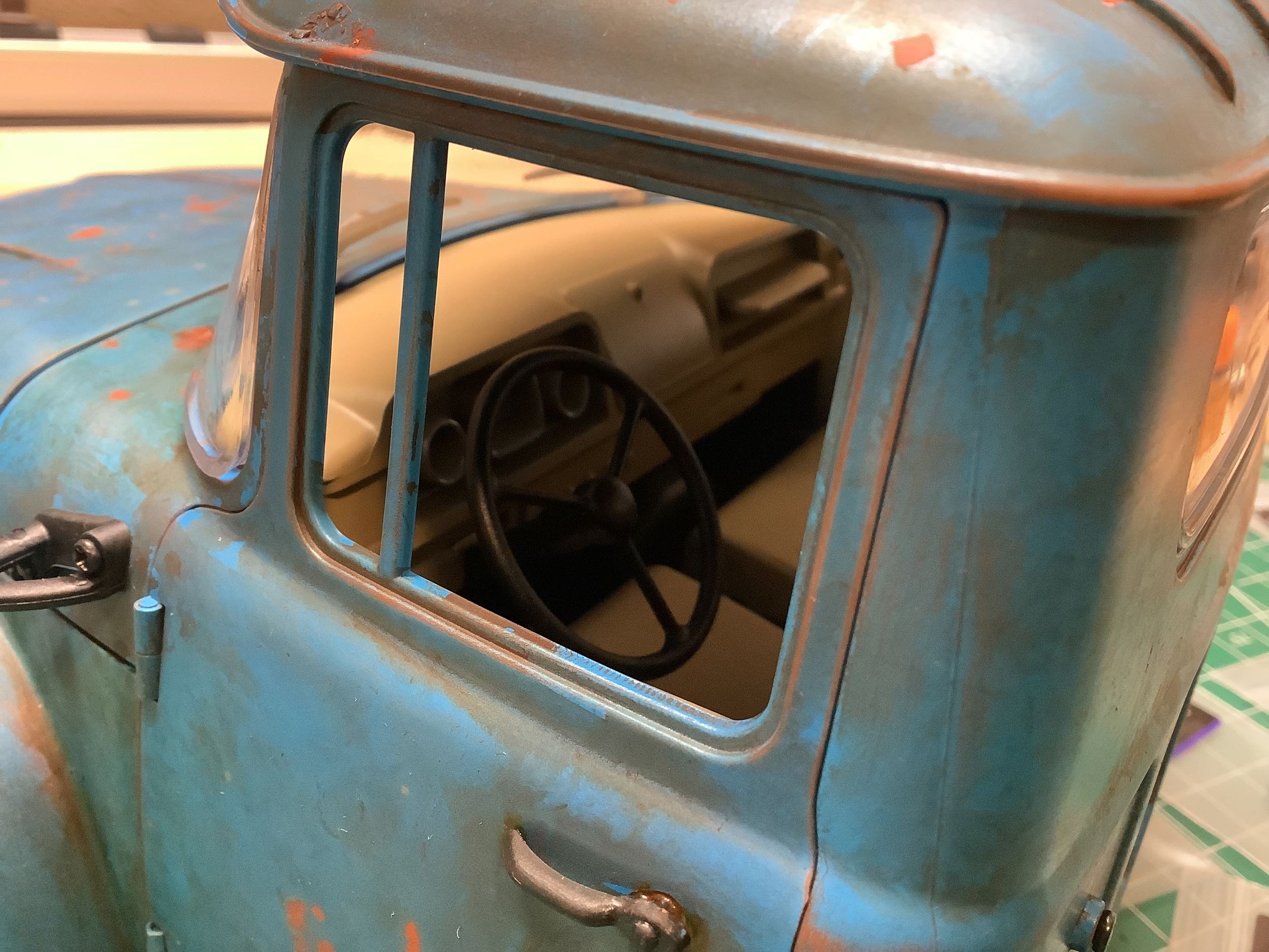 Here's the cab attached to the chassis. Note the lovely wipers and