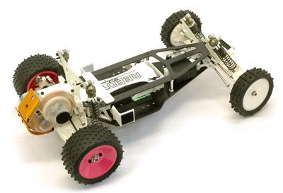 This is a 2WD racing buggy with an aluminum
