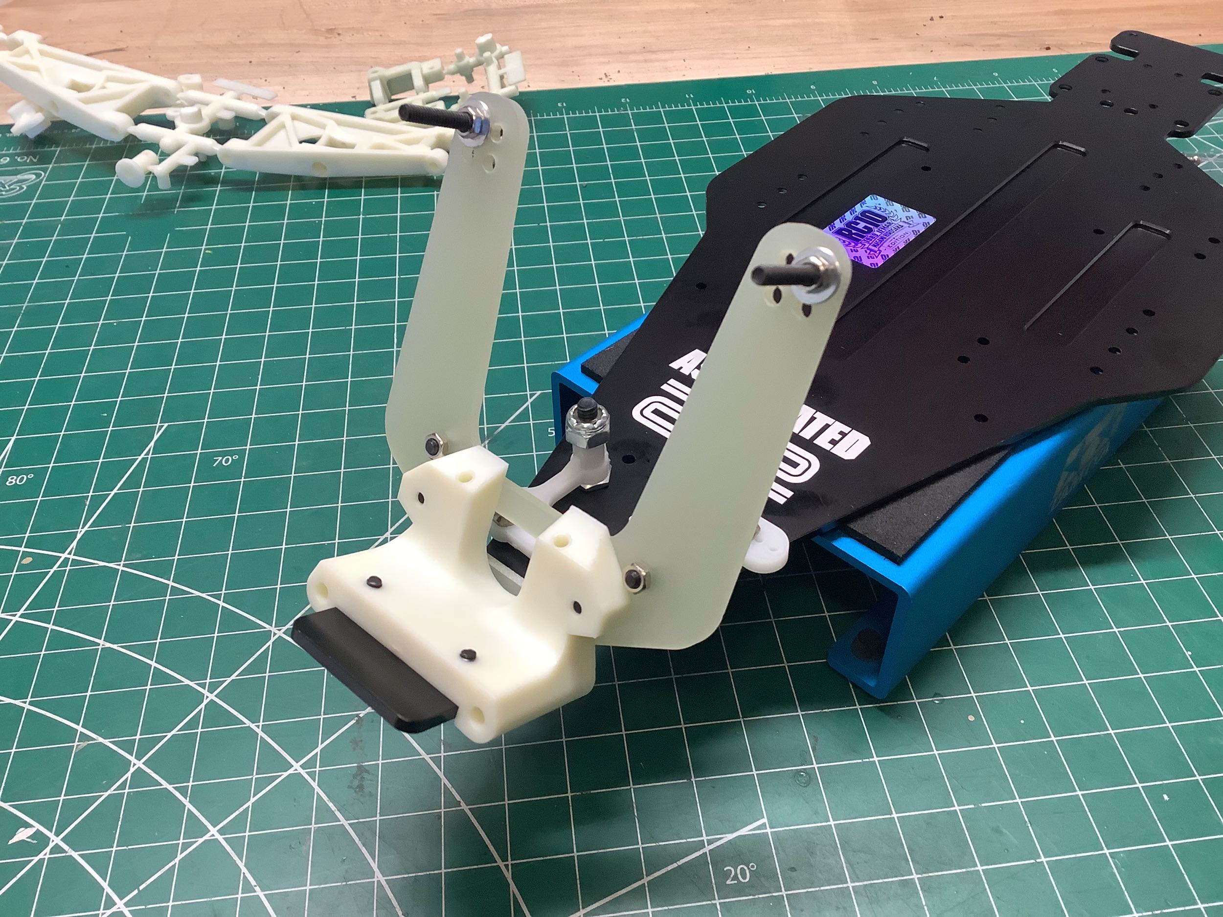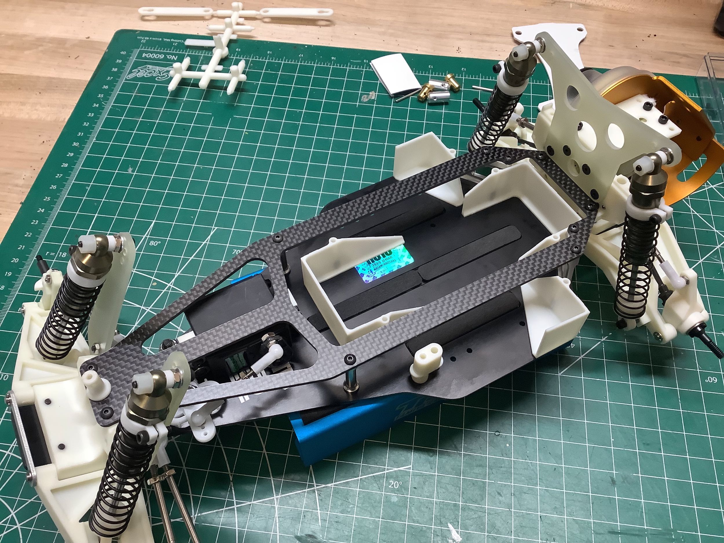 5mm narrower than the gold pan chassis, the lower suspension arms and