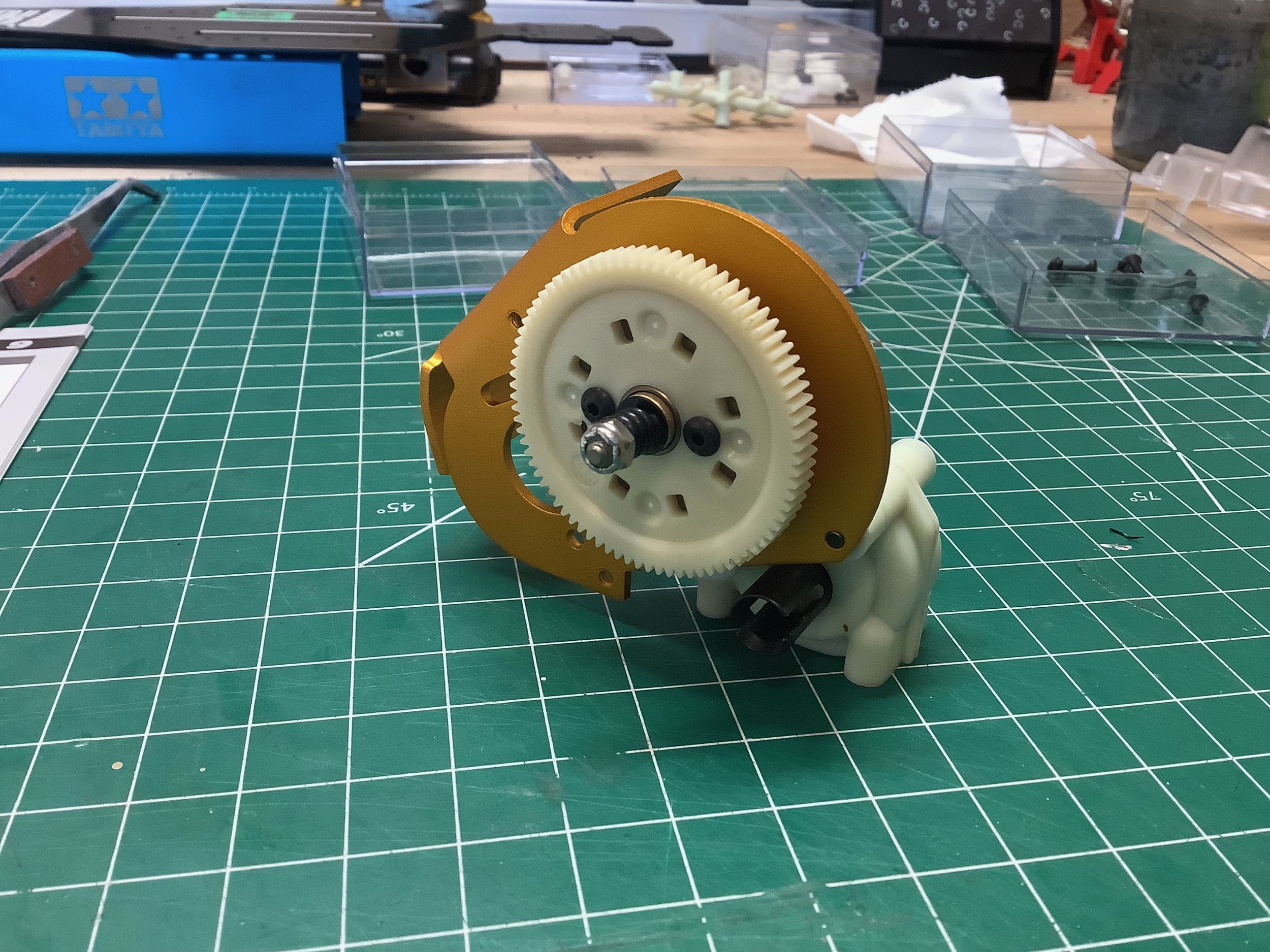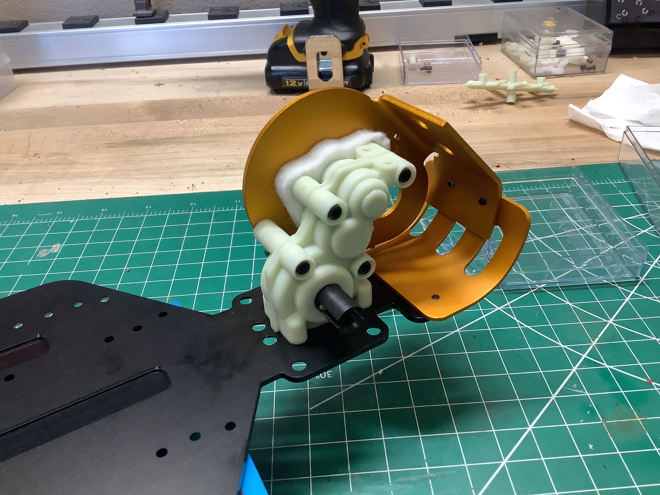 The gold motor mount looks a little out of place on the black
